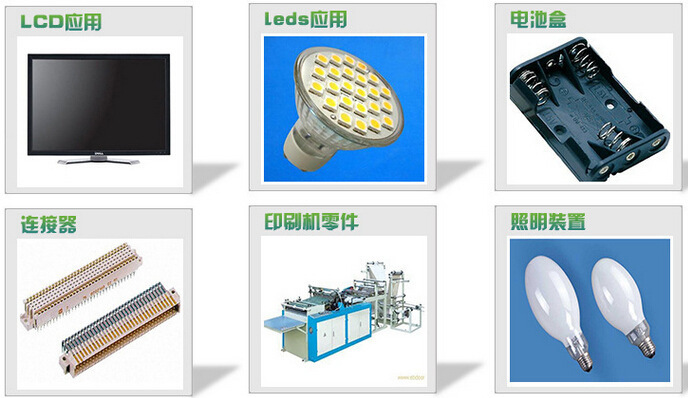 PC工程塑料的三大應用領域是玻璃裝配業、汽車工業和電子、電器工業,其次還有工業機械零件、光盤、包裝、計算機等辦公室設備、醫療及保健、薄膜、休閑和防護器材等。PC可用作門窗玻璃,PC層壓板廣泛用于銀行、使館、拘留所和公共場所的防護窗,用于飛機艙罩,照明設備、工業安全檔板和防彈玻璃